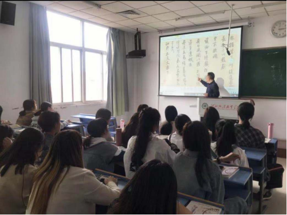 三、开展书法讲座。针对学院书法社团没有专业师资,书法爱好者缺乏专业老师指导的问题,基础教学部主动联系学院法学系和计算系书法社团,安排外聘书法教师王向东先生为书法社团进行了多场书法讲座指导,给国际交流系2020级应用英语专业学生举办了一场书法讲座,讲座内容兼顾软笔与硬笔、理论与实操等方方面面,现场指导和纠正学生的书写技法,赢得了学生的一致好评。