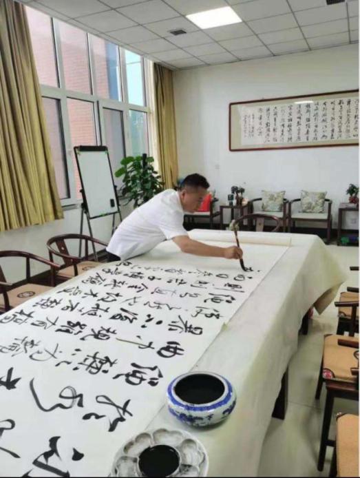 五、组织开展建党百年系列活动。为庆祝建党一百周年,组织承办了庆祝建党100周年书法、绘画比赛、展览等系列活动,大赛共收到师生创作的书法绘画作品400余幅,充分表达了广大师生对党的生日的深深祝福。外聘的书法和美术老师在授课之余也开展了书法和绘画创作。外聘书法老师王向东、绘画老师吴光甫分别创作了书法作品《毛主席诗词——沁园春·雪》《毛主席诗词——七律·长征》《荀子——劝学(节选)》和国画作品《春光无限》《松山论道》《映日荷花别样红》《满目青山溪水流》等作品赠送给我院,分别悬挂于办公楼、教学楼、学生宿舍楼,浓厚了校园文化氛围,发挥了环境育人的作用。外聘美术老师董立军将自己精心创作的40幅山水花鸟画赠送我院,极大地提升了学院的艺术氛围。