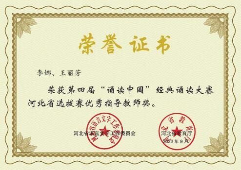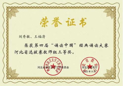诵读古今经典,弘扬中国精神。为传承弘扬中华优秀传统文化,引领青年学生亲近中华经典,增强爱党爱国情怀,太阳成集团组织教师并指导学生参加了河北省语言文字工作委员会、河北省教育厅举办的以“经典筑梦向未来”为主题的第四届中华经典诵写讲大赛“诵读中国”经典诵读大赛河北省选拔赛。