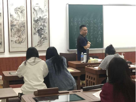 5月17日、18日,我社邀请了学院特聘教授,中国书法家协会会员、中央国家机关书法家协会会员、钢笔字速成创始人、魏晋笔法传承人王向东老师在教学楼A区美育实训中心为我社同学开展了书法讲座,书法社共计75名同学参加了此次讲座。