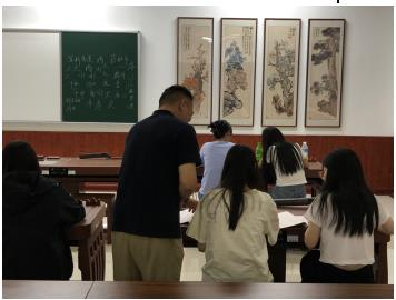 5月30、31日,墨轩书法社邀请了中国书法家协会会员、中央国家机关书法家协会会员、文化部中国国际书画艺术研究会创作基地研究员、人民日报民生周刊书法院顾问、王向东书法工作室主任、钢笔字速成创始人、魏晋笔法传承人王向东老师校本部A区美育实训中心为同学们开展了书法讲座,此次讲座共计75人参加。 王老师为前来听讲座的同学耐心细致的讲解书法的基本知识、学习书法的益处、书法用笔技巧、书写过程中的注意事项等。王老师不单是单纯的讲解怎么写一个字,他告诉同学们应该在写的像的基础之上灵活运用,要把撇捺舒展开。王老师现场示范,手把手教导,在老师的指导和帮助下,同学们兴趣高昂,认真练习,写的字形挺拔,笔画流畅,有的写出笔锋,颇具书法韵味,对于如何临字有了更加深刻的认识,领悟到了写字的方法。 王老师教会了同学们如何进行排版布局,有连绵、相邻、单字等形式,打开了同学们的眼界,他还给同学们讲了自身书法之路的经历。让同学们领略到了汉字的生命力和艺术魅力,体会到了写字与做人的道理。
