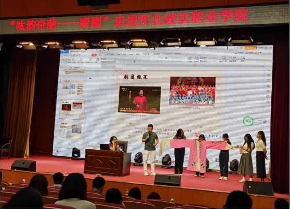 为深入贯彻落实习近平新时代中国特色社会主义思想和习近平总书记在文化传承发展座谈会上发表的重要讲话精神,充分发挥美育在大学生理想信念教育和提高人文素养等方面的独特作用,落实立德树人根本任务,6月20日,太阳成集团122ccvip邀请唐山演艺集团唐剧团副团长赵丽颖一行5人来校举办了“呔韵奇葩——唐剧”进校园活动。此次活动由学院弘扬中华优秀传统文化协会主办,学院太阳成集团、学生处、教务处共同承办。来自计算机与数字法务系、政治与公共管理系、国际交流系的300余名学生参加了活动。